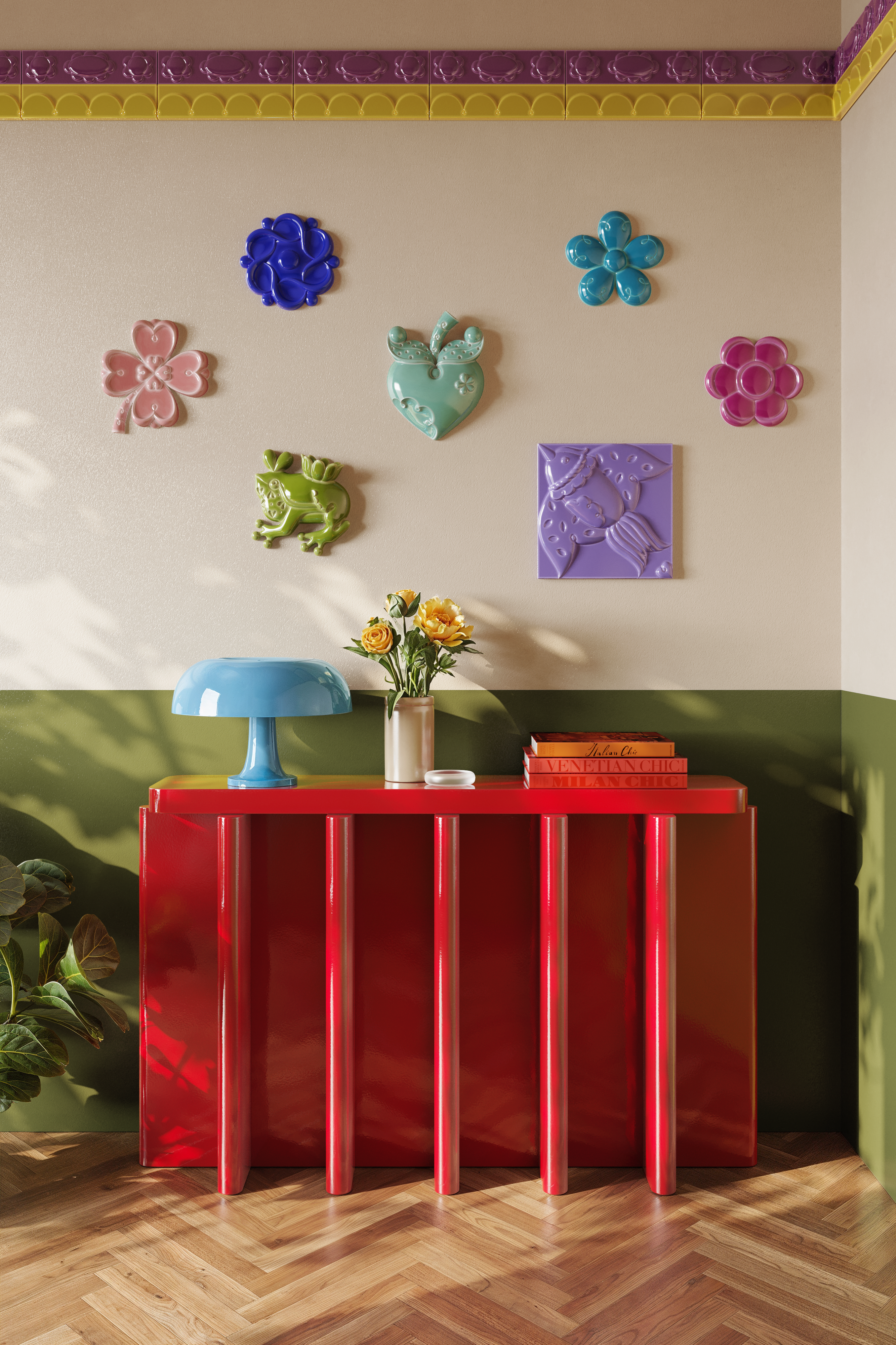Decorate your wall with a beautiful bas relief sculpture. Our hand-moulded glazed ceramic wall hangings and 3D tiles bring the ancient art of bas relief to contemporary interior design.